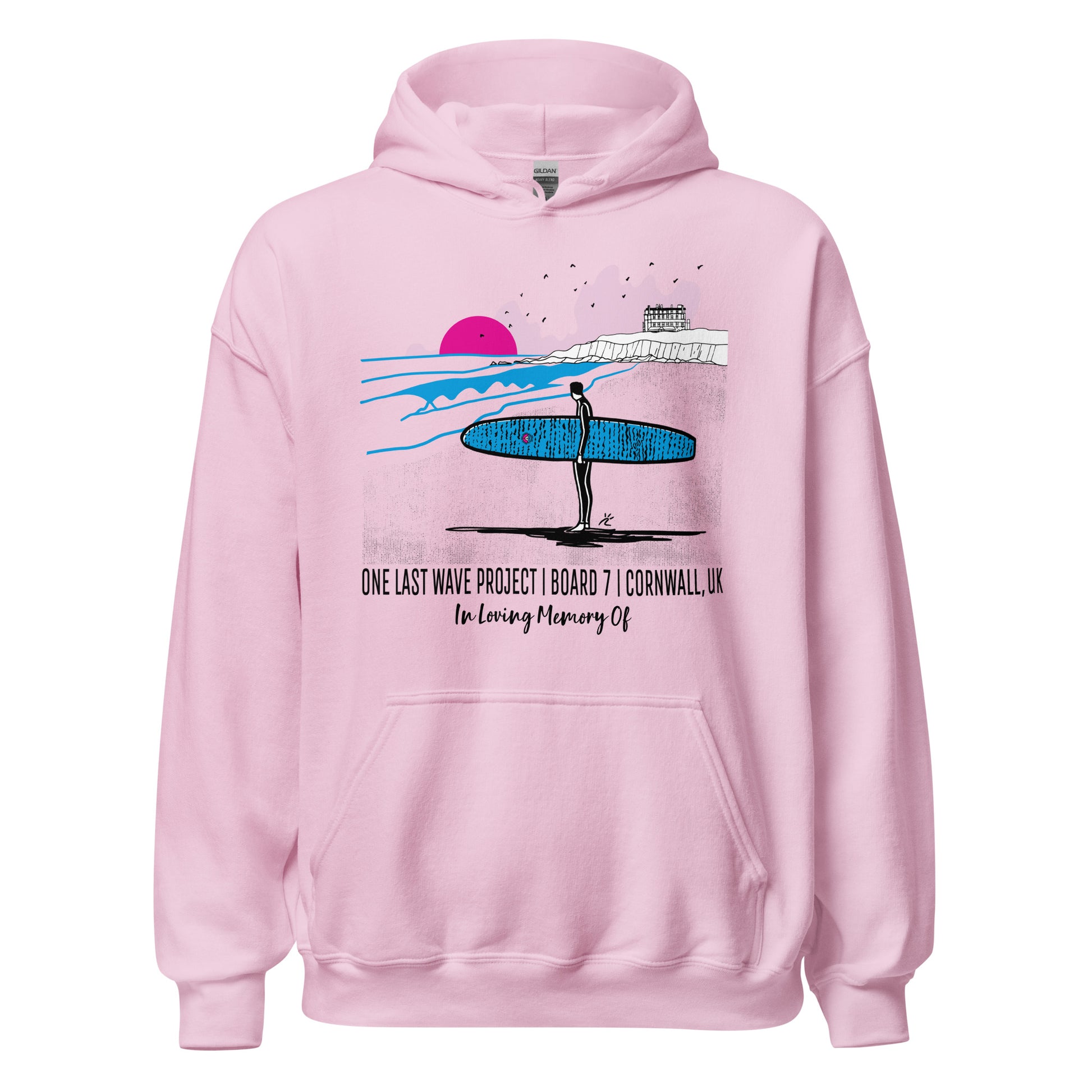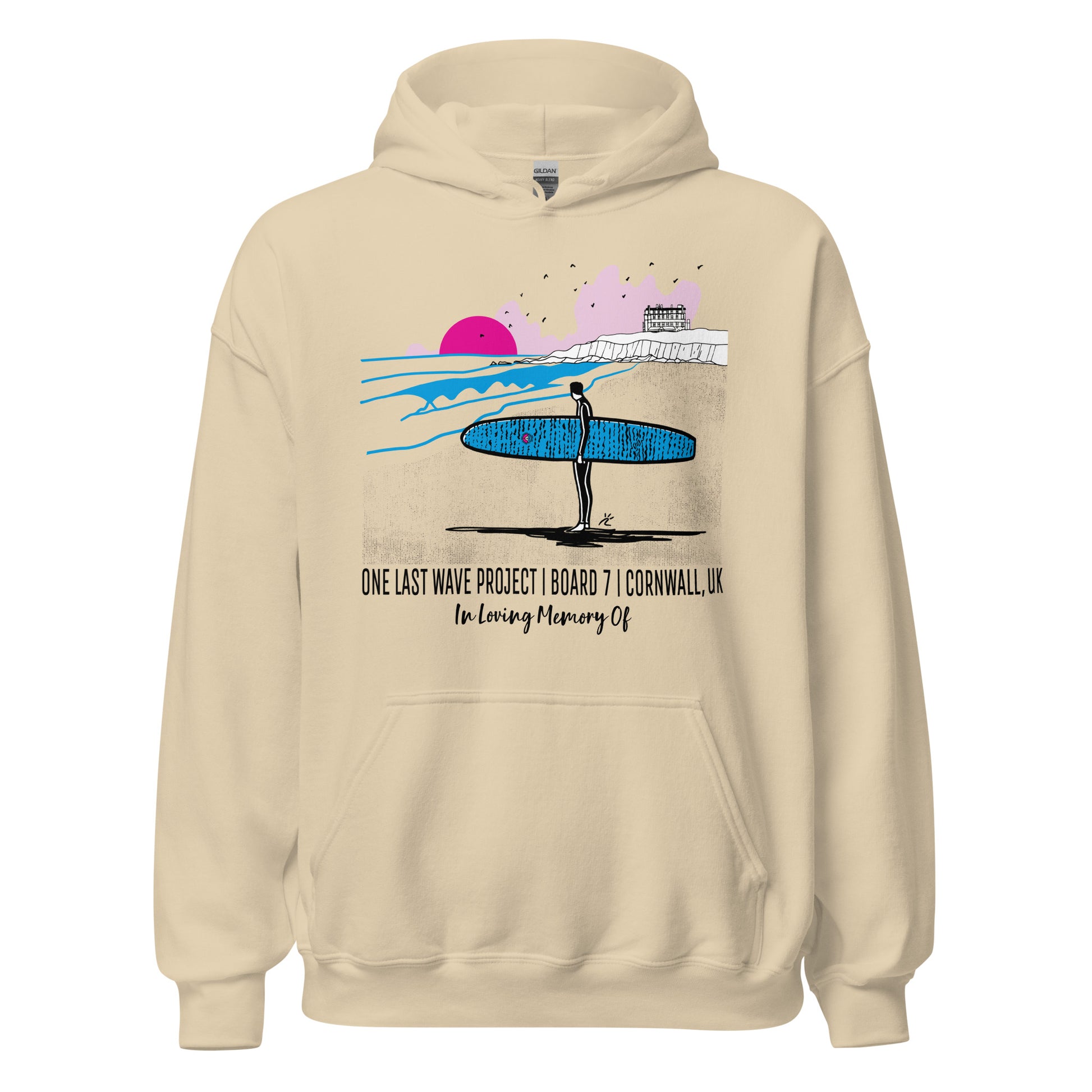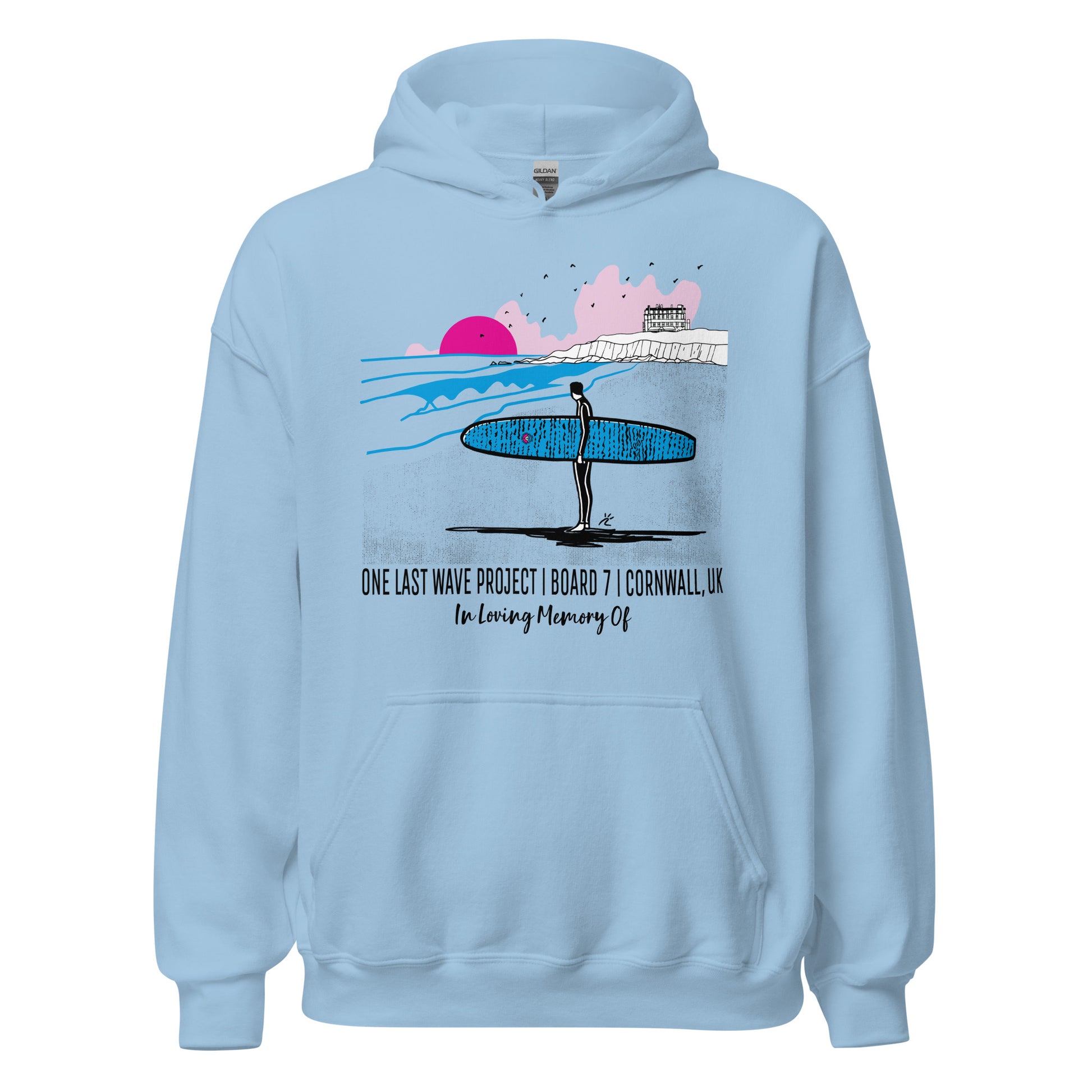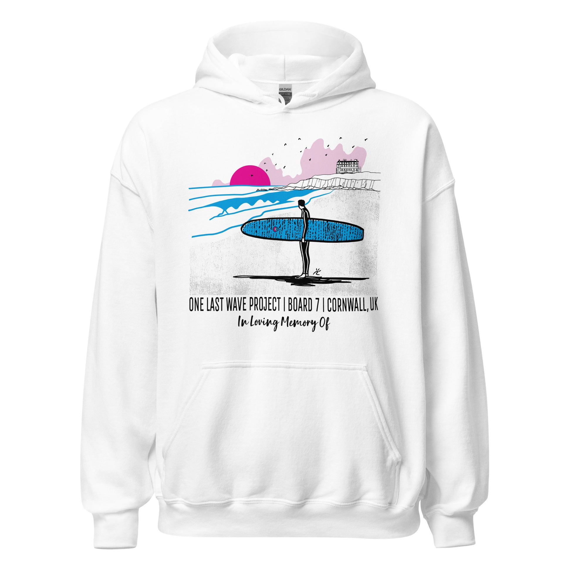 Now personalizable! Comfy and cozy, this soft classic feel OLWP hoodie features the vibrant design of Board #7 at Fistral beach in Cornwall, UK, and was created by renowned surf artist Raul Casado. It'll keep you warm whether you are out on the move or relaxing by the cool sea breeze.