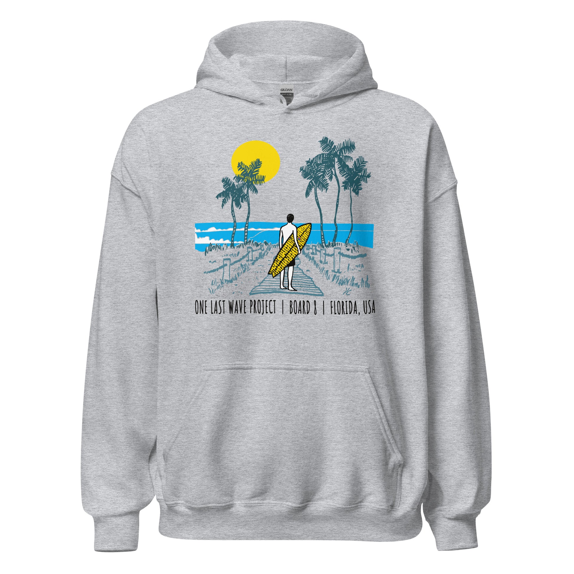Comfy and cozy, this soft classic feel OLWP hoodie features the vibrant design of Board #8 on the beach in Florida, USA, and was created by renowned surf artist Raul Casado. It'll keep you warm whether you are out on the move or relaxing by the cool sea breeze.