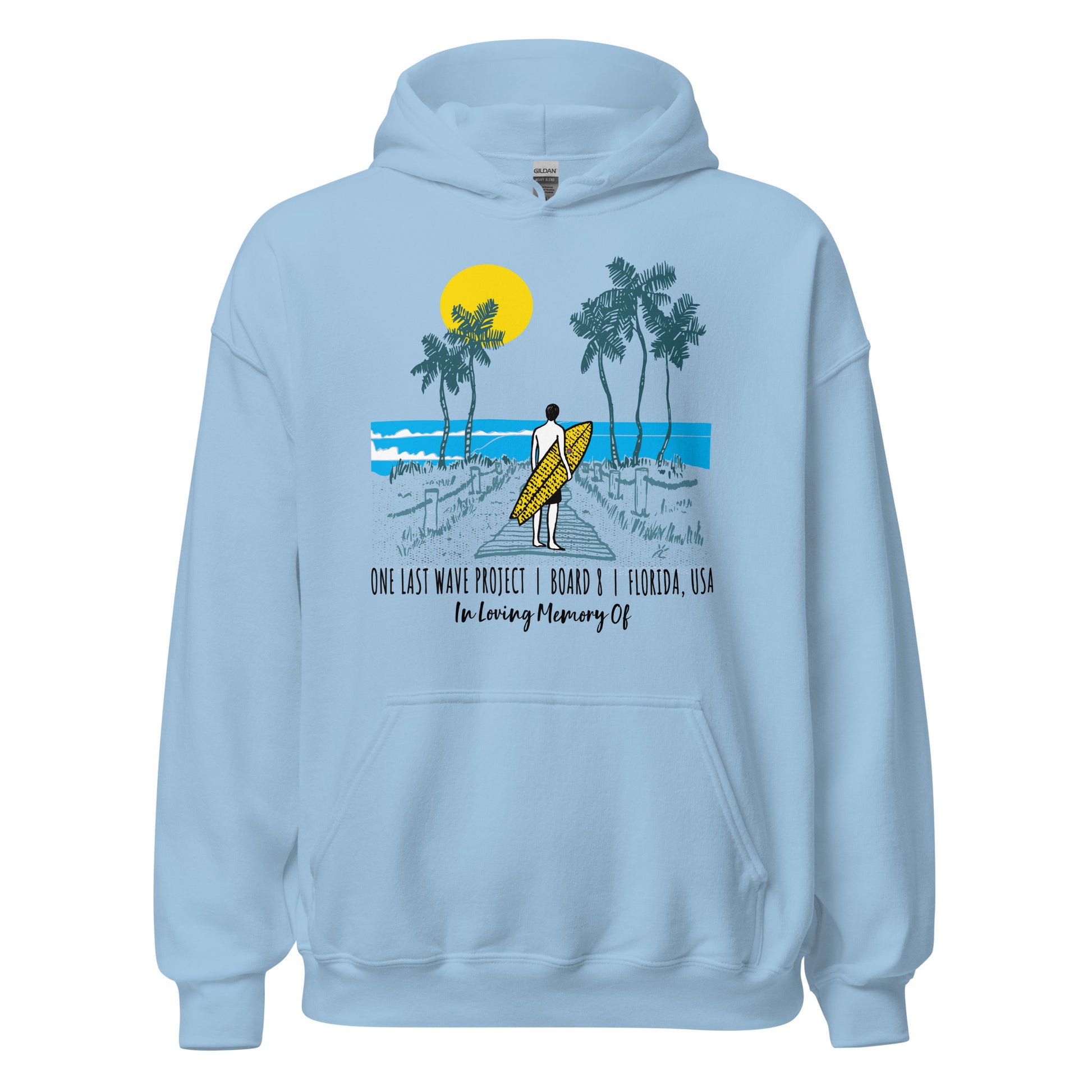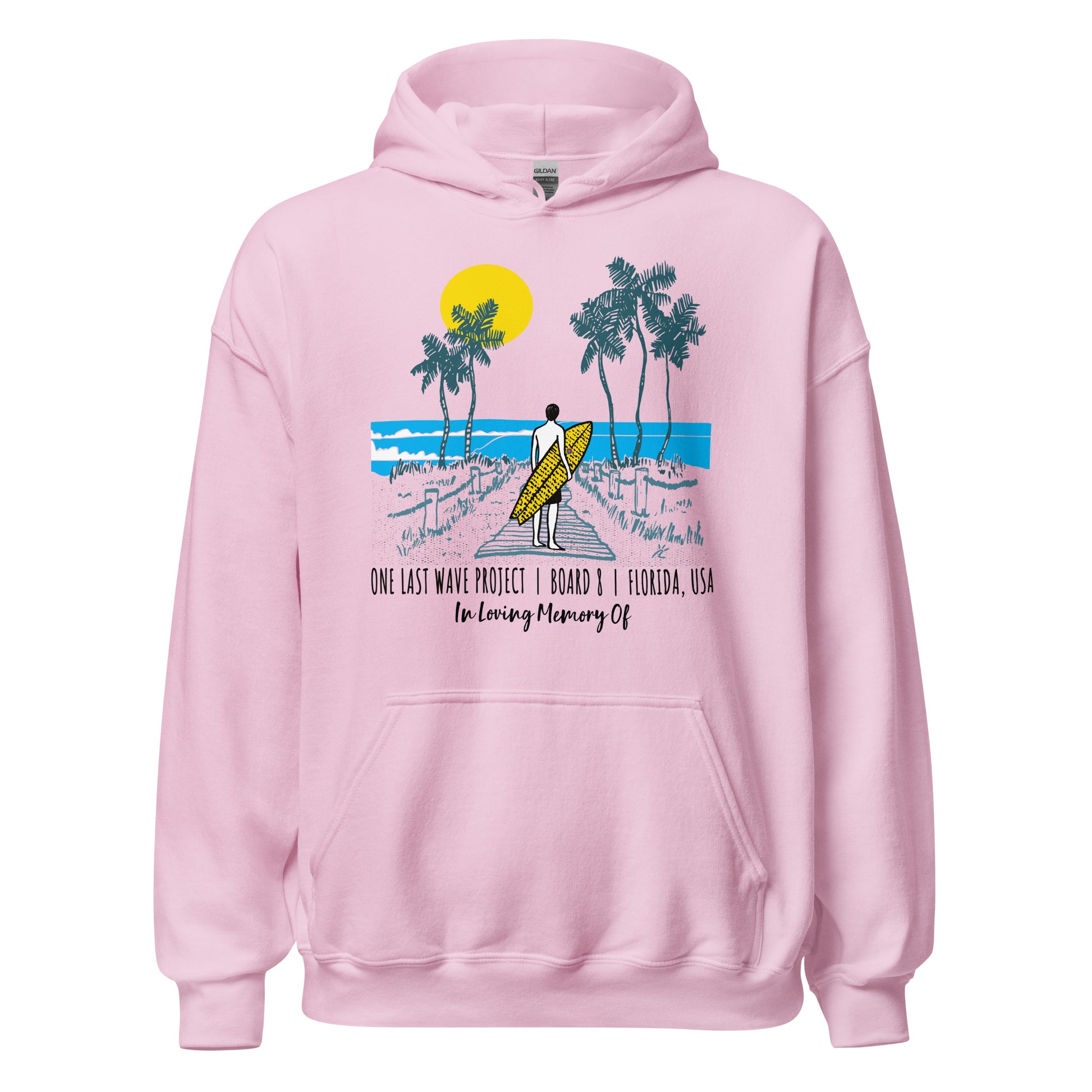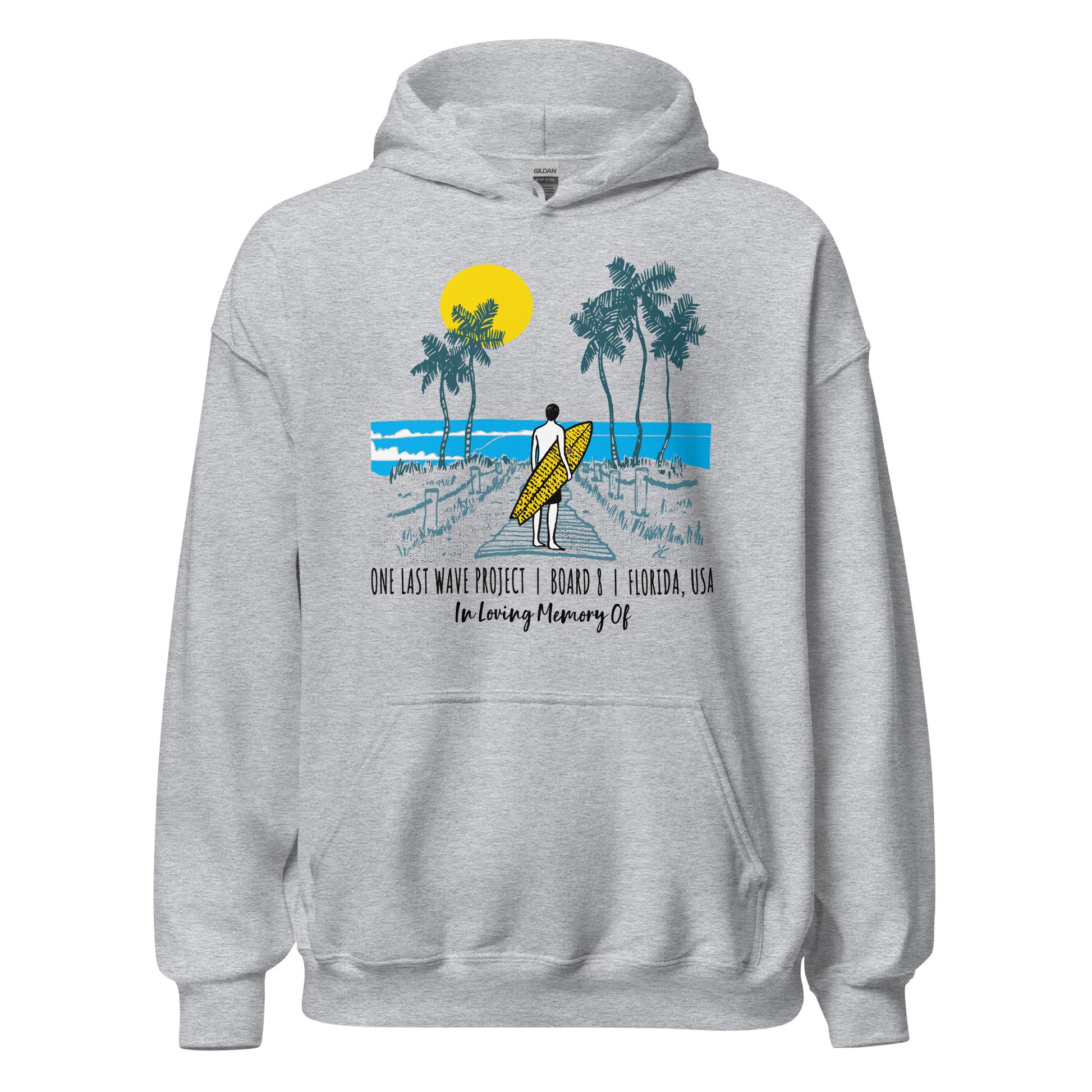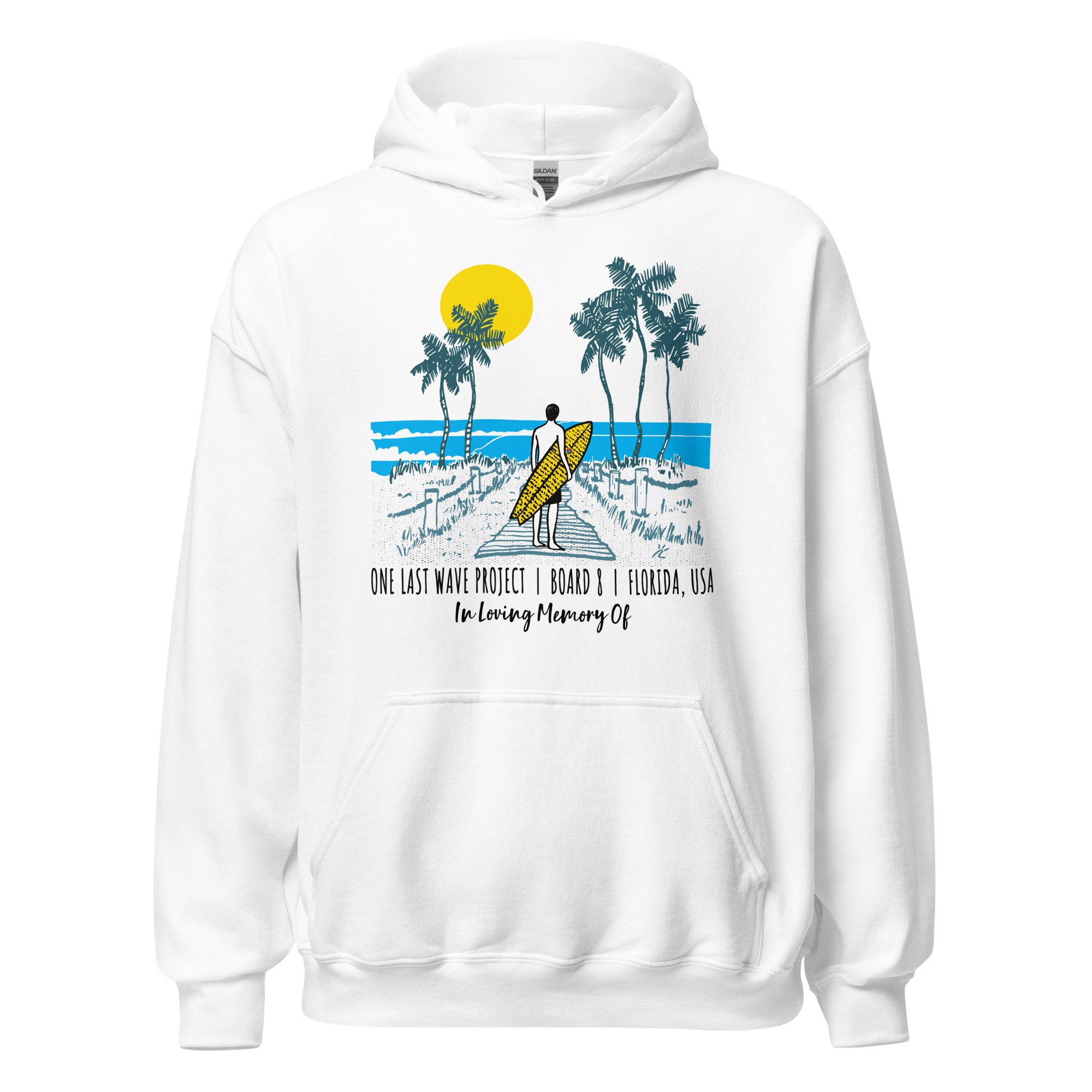 Now personalizable! Comfy and cozy, this soft classic feel OLWP hoodie features the vibrant design of Board #8 on the beach in Florida, USA, and was created by renowned surf artist Raul Casado. It'll keep you warm whether you are out on the move or relaxing by the cool sea breeze.